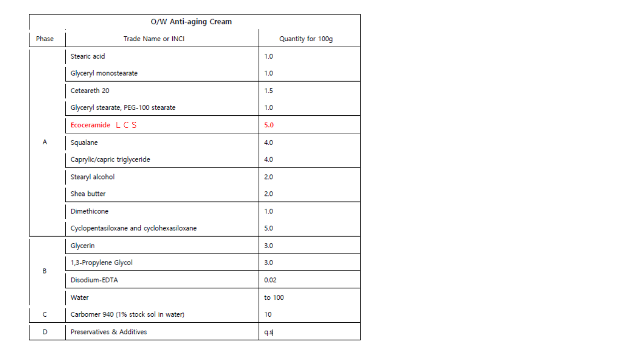 EcoCeramideの処方例_O/W エイジングケアクリー_