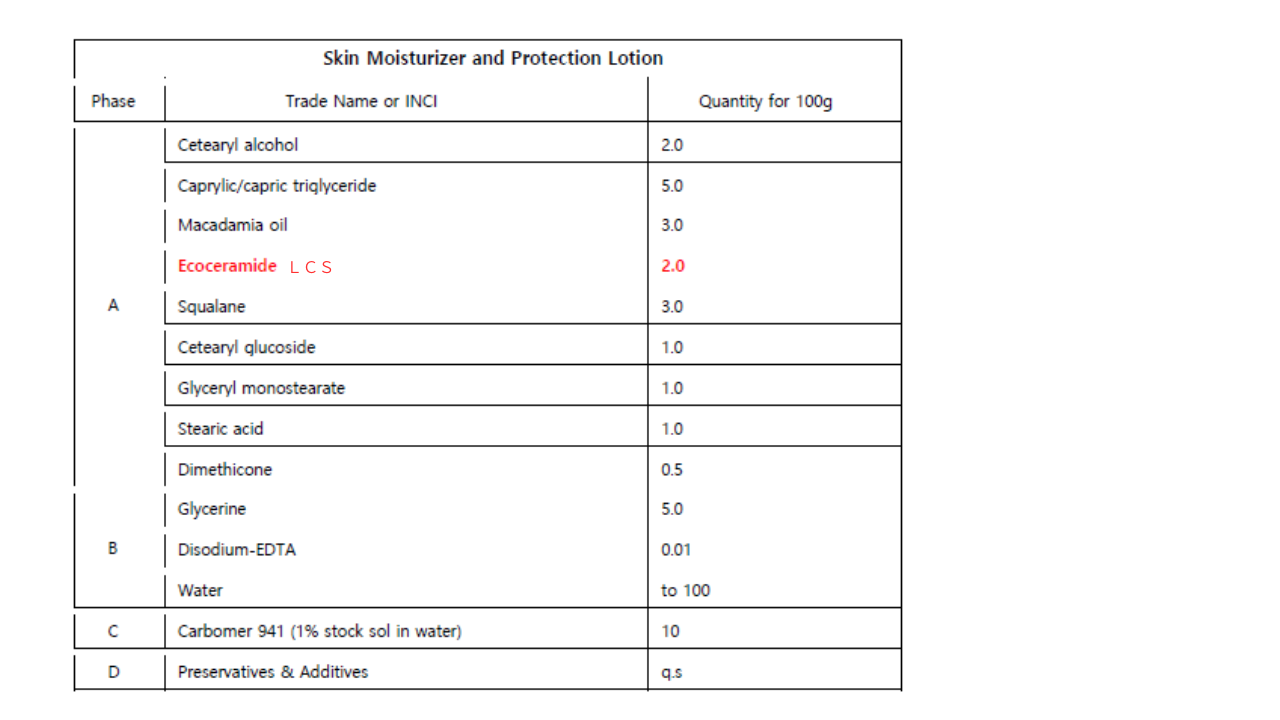 - EcoCeramide LCS は、融点が低いため(処方例参照)、HP EcoCeramideよりも配合が簡単です。