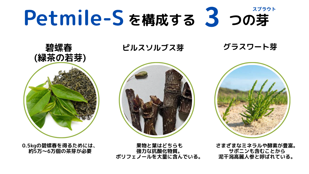 本原料の開発のため、様々な素材から選抜されたのが、3つの芽(スプラウト)
