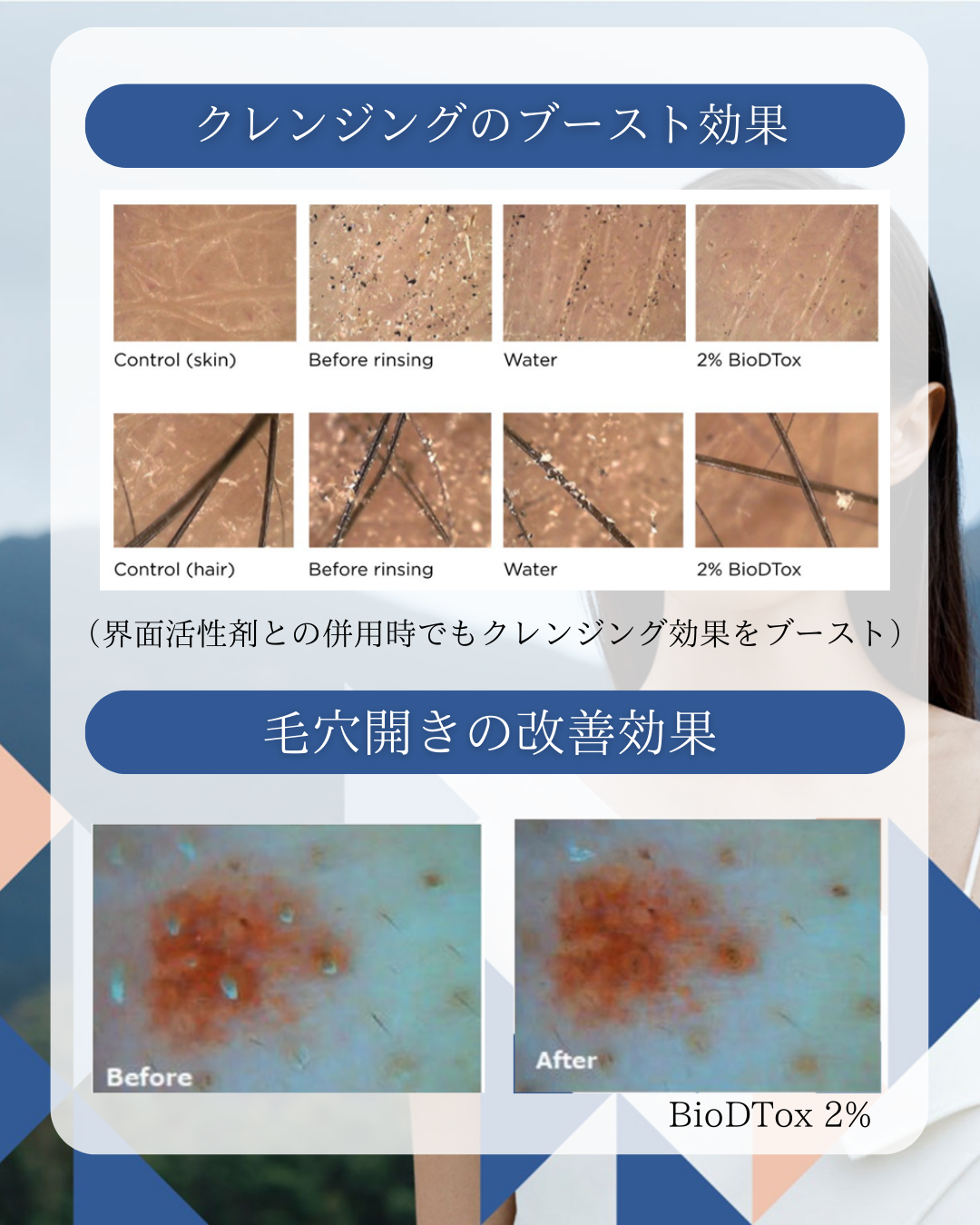 今回紹介したBioDToxですが、掲載した効果以外にも汚れを集めて落としやすくする効果や、皮脂を抑えたり、鱗屑量を手減させる効果なども備えています。